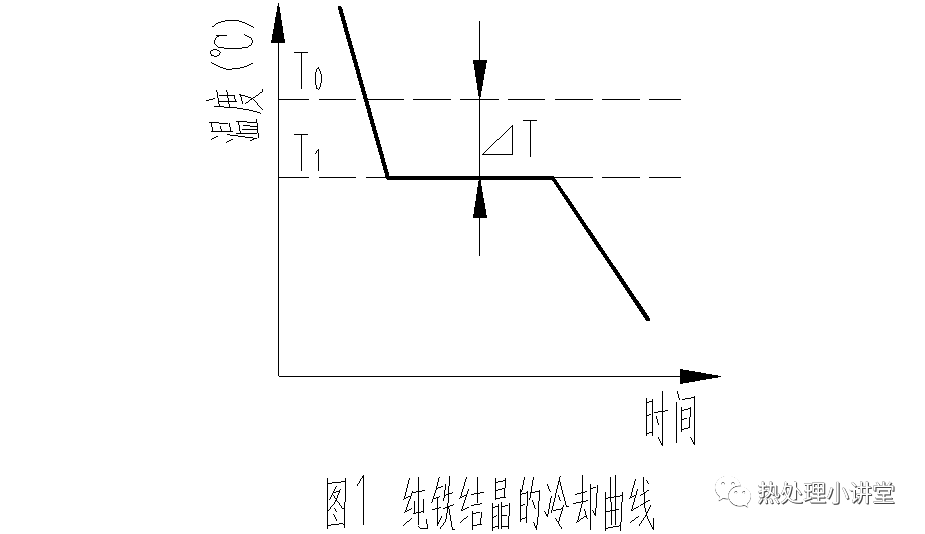 物质冷却过程中温度和时间的关系曲线叫冷却曲线。金属结晶的冷却曲线可用热分析法测定,其测定过程如下:先将金属熔化并使温度尽可能均匀,然后以一定的速度冷却,记录下温度随时间变化的数据,并将其绘制在温度-时间坐标中,便可获得如图1所示的冷却曲线。由于结晶时放出的结晶潜热补偿了金属向外界散失的热量,冷却曲线上出现了一段水平线,这段水平线所对应是温度就是金属的实际结晶温度。实验表明,金属的实际结晶温度T1总是低于理论结晶温度(平衡结晶温度)T0,这种现象叫做过冷。过冷是结晶的必要条件,T1和T0之间的差值△T叫做过冷度,即△T=T0-T1。