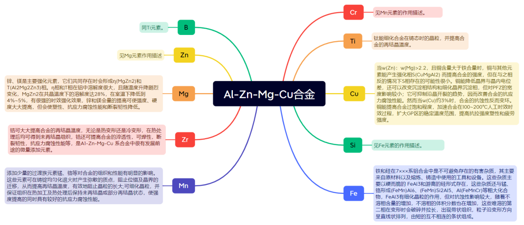 H×8状态与O状态的最小抗拉强度的差值 T×细分状态代号说明与应用 T××及T×××细分状态 代号说明与应用 消除应力状态代号说明与应用 W_h—室温下具体自然时效时间的不稳定状态。如W2h,表示产品淬火后,在室温下当然时效2h。 W_h/_51、W_h/_52、W_h/_54—表示室温下具体自然时效时间的不稳定消除应力状态。如W2h/351表示产品淬火后,在室温下自然时效2 h便开始拉伸的消除应力状态。 Source:《GB/T 16475-2008 变形铝及铝合金状态代号》 1×××系铝合金中的主要杂质元素是铁和硅,其次是铜、镁、锌、锰、铬、钛、硼等,以及一些稀土元素,这些微量元素在部分1×××系铝合金中还起合金化的作用,并且对合金的组织和性能均有一定的影响。 1)Al-Cu-Mg系合金的主要合金牌号有2A01、2A02、2A06、2A11、2A12等,主要添加元素有铜、镁和锰,合金中添加的少量微量元素有钛和锆,杂质元素主要是铁、硅和锌等。它们对合金有如下作用: 当w(Mg)为1%~2%时,w(Cu)从1%增加到4%,淬火状态的合金抗拉强度从200MPa提高到380MPa;淬火自然时效状态下合金的抗拉强度从300MPa 增加到480MPa。w(Cu)在1%~4%内,w(Mg)从0.5%增加到2.0%时,合金的抗拉强度增加;继续增加w(Mg)时,合金的强度降低。 w(Cu)=3%~5%的Al-Cu二元合金,在淬火自然时效状态下耐蚀性能很低。加入0.5%Mg,降低α固溶体的电位,可部分改善合金的耐蚀性。w(Mg)>1.0%时,合金的局部腐蚀增加,腐蚀后伸长率急剧降低。 w(Cu)>4.0%,w(Mg)>1.0%的合金,镁降低了铜在铝中的溶解度,合金在淬火状态下有不溶解的CuAl2和S相,这些相的存在加速了腐蚀。w(Cu)=3%~5%和w(Mg)=1%~4%的合金,它们位于同一相区,在淬火自然时效状态耐蚀性相差不多。α-S相区的合金比α-CuAl2-S区域的耐蚀性能差。晶间腐蚀是Al-Cu-Mg系合金的主要腐蚀倾向。 钛能细化铸态晶粒,减少铸造时形成裂纹的倾向性。 少量的锆和钛有相似的作用,细化铸态晶粒,减少铸造和焊接裂纹的倾向性,提高铸锭和焊接接头的塑性。加锆不影响含锰合金冷变形制品的强度,对无锰合金强度稍有提高。 w(Mg)低于1.0%的Al-Cu-Mg合金,w(Si)超过0.5%,能提高人工时效的速度和强度,而不影响自然时效能力。因为硅和镁形成Mg2Si相,有利于提高人工时效效果。但w(Mg)提高到1.5%时,经淬火自然时效或人工时效处理后,合金的强度和耐热性能随w(Si)的增加而下降。因而,w(Si)应尽可能地降低。除此以外,w(Si)增加将使2A12,2A06等合金铸造形成裂纹倾向增加,铆接时塑性下降。因此,合金中的w(Si)一般限制在0.5%以下。要求塑性高的合金,w(Si)应更低些。 铁和铝形成FeAl3化合物,铁会溶入铜、锰,硅等元素所形成的化合物中,这些不溶入固溶体中的粗大化合物,会降低合金的塑性,使变形时合金易于开裂,并使强化效果明显降低。而少量的铁(低于0.25%)对合金力学性能影响很小,可改善铸造、焊接时裂纹的形成倾向,但使自然时效速度降低。为获得高塑性的材料,合金中的铁和硅含量应尽量低些。 少量的锌(w(Zn)=0.1%~0.5%)对Al-Cu-Mg 合金的室温力学性能影响很小,但使合金耐热性降低。合金中w(Zn)应限制在0.3%以下。 2)Al-Cu-Mg-Fe-Ni系合金的主要合金牌号有2A70、2A80、2A90等,各合金元素有如下作用: 镍与合金中的铜可以形成不溶解的三元化合物,镍含量低时形成(AlCuNi)含镍高时形成Al3(CuNi)2,因此镍的存在能降低固溶体中铜的浓度,对淬火状态晶格常数的测定结果也证明了合金固溶体中铜溶质原子的贫化。当铁含量很低时,镍含量增加能降低合金的硬度,减小合金的强化效果。 铁和镍一样,也能降低固溶体中铜的浓度。当镍含量很低时,合金的硬度随铁含量的增加开始时明显降低,但当铁含量达到某一数值后,又开始提高。 在AlCu2.2Mg1.65合金中同时添加铁和镍时,淬火自然时效、淬火人工时效、淬火和退火状态下的硬度变化特点相似,均在镍、铁含量相近的部位出现一个最大值,相应在此处其淬火状态下的晶格常数出现一极小值。 当合金中铁含量大于镍含量时,会出现Al7Cu2Fe相。而当合金中镍含量大于铁含量时,则会出现AlCuNi相,上述含铜三元相的出现,降低了固溶体中铜的浓度,只有当铁,镍含量相等时全部生成Al9FeNi相。在这种情况下,由于没有过剩的铁或镍去形成不溶解的含铜相,故合金中的铜除形成S(Al2CuMg)相外,同时也增加了铜在固溶体中的浓度,这有利于提高合金强度及其耐热性。 铁、镍含量可以影响合金耐热性。Al9FeNi相是硬脆的化合物,在Al中溶解度极小,经锻造和热处理后,当它们弥散分布于组织中时,能够显著地提高合金的耐热性。 在2A80合金中加入w(Si)=0.5%~1.2%,可提高合金的室温强度,但使合金的耐热性降低。 2A70合金中加入w(Ti)=0.02%~0.1%,可细化铸态晶粒,提高锻造工艺性能,对耐热性有利,但对室温性能影响不大。 3)Al-Cu-Mn系合金主要合金牌号有2A16,2A17等,合金中添加的微量元素有镁、钛和锆,而主要杂质元素有铁、硅、锌等,其影响如下: 在室温和高温下,随着铜含量提高合金强度增加。w(Cu)达到5.0%时,合金强度接近最大值。另外铜能改善合金的焊接性能。 锰是提高耐热合金的主要元素,它可提高固溶体中原子的激活能,降低溶质原子的扩散系数和固溶体的分解速度。当固溶体分解时,析出T相 (Al20Cu2Mn3)的形成和长大过程也非常缓慢,所以合金在一定高温下长时间受热时性能也很稳定。添加适当的锰(w(Mn)=0.6%~0.8%),能提高合金淬火和自然时效状态的室温强度和持久强度。但锰含