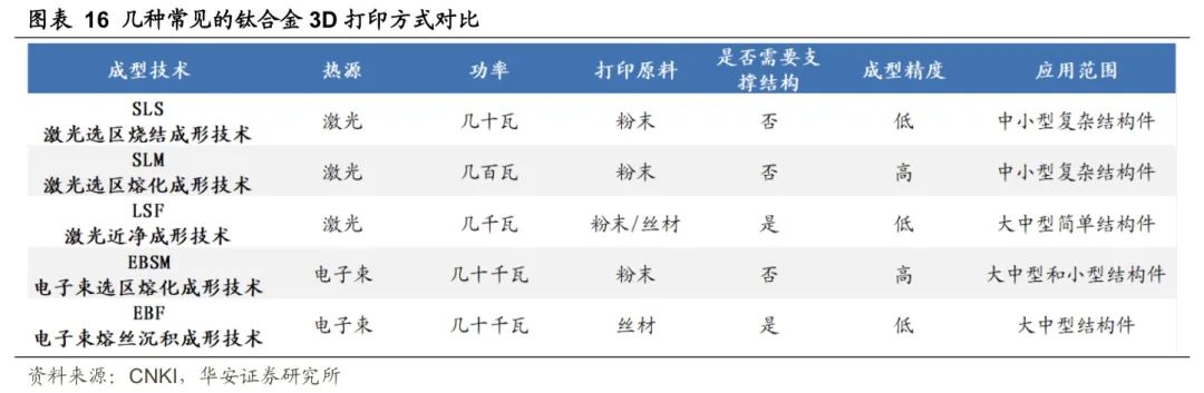根据对比,EBSM技术或是未来最具发展前景的钛合金3D打印技术,原因如下: