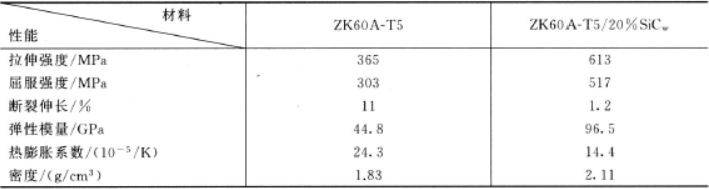 表8 SiCw/ZK60A镁基复合材料与基体合金性能的比较