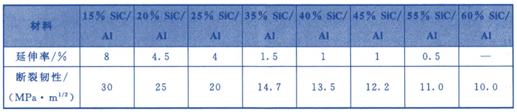 表5 不同SiC颗粒含量增强AI基复合材料的延伸率和断裂韧性