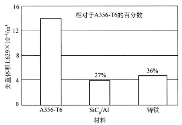 4 SiCp/Al复合材料与铸铁、基体金属耐磨性比较