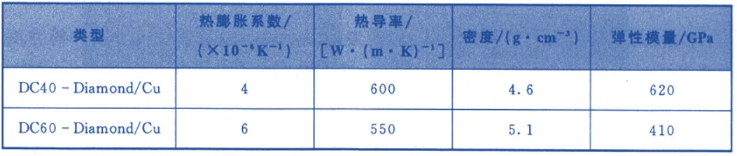 表9 SEI公司开发的Diamond/Cu复合材料的主要性能