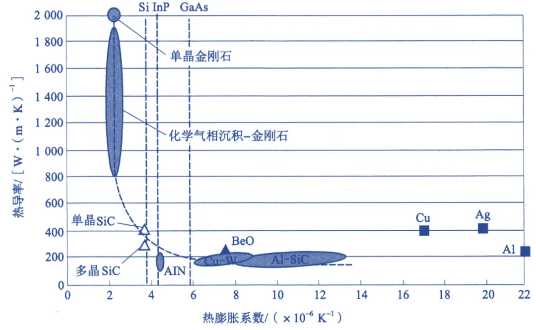图8 电子封装材料的热导率和热膨胀系数