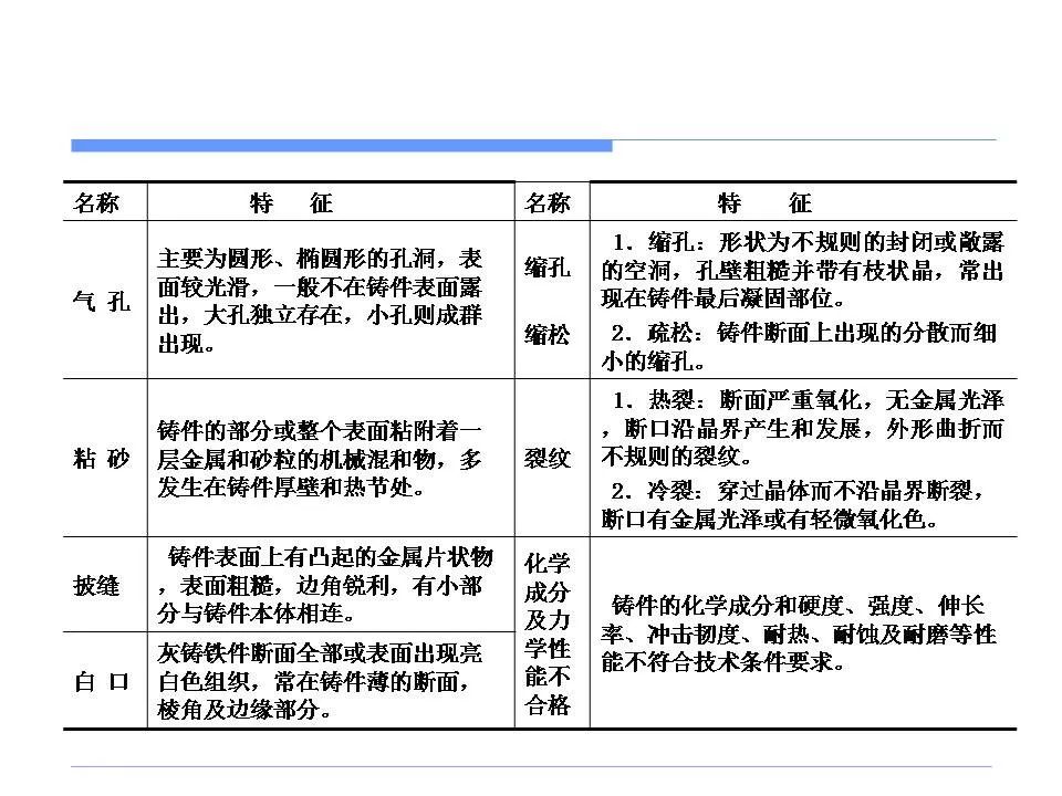 常见缺陷