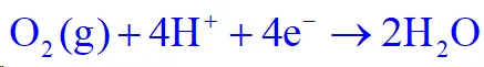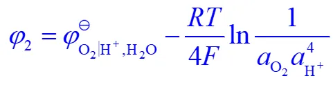 在酸性气氛中,大气中的氧气在阴极上获得电子,发生还原反应(亦称为吸氧腐蚀)