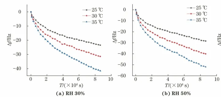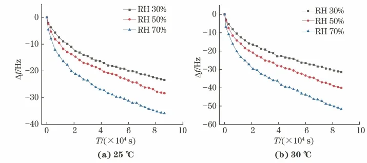 文物作为文化传承的载体,是极其重要的文化遗产,具有重要的历史、艺术和科学价值。其中,银质文物以其精湛的制造工艺和别致精美的造型和纹饰在文物中占有十分重要的地位。然而,陈列在博物馆中的银质文物容易受到温湿度、光照以及各种污染物(如SO2)等环境因素的影响,从而发生腐蚀变色,严重影响陈列效果。 馆藏环境中主要污染性气体有二氧化硫(SO2)、氮氧化物、硫化氢、甲醛、氯化物和臭氧等。在各种环境政策下,SO2总体排放量虽然逐渐减少,但是它在空气中会被氧化成SO3,溶于水时会生成腐蚀性较强的硫酸,加速文物的腐蚀;同时,SO2也会在紫外线的催化作用下与大气中的颗粒物发生反应生成硫酸型烟雾,腐蚀金属文物。 相对湿度和温度是博物馆环境中重要的监测指标,相对湿度变化会影响金属表面吸附水膜厚度,而温度变化会对腐蚀反应速率产生影响。金属的大气腐蚀都是在一定温湿度条件下发生的,因此研究环境温度、相对湿度和SO2含量及其复合环境中银质材料的腐蚀行为和机理,探讨环境因素之间相互作用的关联性,对馆藏银器的预防性保护和保存意义重大。 华东理工大学和上海博物馆的科研人员采用QCM反应性监测方法原位监测在不同环境温度、相对湿度、SO2含量下表面电沉积银的石英晶振片的频率变化,得到其腐蚀动力学曲线,并结合扫面电镜-能谱分析和拉曼光谱技术对金属银腐蚀前后表面形貌以及腐蚀产物进行分析,探讨了环境因素变化对金属银腐蚀行为的影响。 试样制备 采用恒电流法在石英晶振片表面电沉积银。电沉积设备为ZF-9型恒电流/恒电位仪。基体材料为直径0.45 cm,基准频率9.21 MHz的石英晶振片,为保证其良好的温度特性,晶片采用AT切割。 电镀前,用乙醇和丙酮清洗石英晶振片表面,再用去离子水清洗并用N2吹干。 电镀液为250 g/L硫代硫酸钠+45 g/L硝酸银+20 g/L醋酸钠+45 g/L焦亚硫酸钾+0.6 g/L硫代氨基脲的混合水溶液,然后加入0.5 g/L的活性炭,静置、过滤后得到澄清的电镀液。 电镀时,石英晶振片为阴极,金属银丝为阳极,电流密度为1 mA/cm2,电镀时间为120 s,并控制阴阳极面积比为1∶2。电镀结束后,用去离子水清洗振片,吹干备用。 QCM反应性检测 采用QCM922型QCM对镀银石英晶振片在SO2气氛中的频率变化进行监测。 图1为石英晶体微天平试验装置图。镀银石英晶振片置于烧瓶内的样品盘上,烧瓶盖上有进气口和出气口,污染性气体和干湿合成气由进气口进入反应釜,出气口尾端设有尾气吸收装置,吸收污染尾气。利用水浴锅控制反应温度,相对湿度则由通入干湿气体的比例来控制,并用湿度计实时监测。 图1 QCM试验装置示意 试验过程中,SO2质量浓度分别为5.0,10.0和15.0 μg/L,环境的相对湿度(RH)分别为30%,50%和70%,温度分别为25 ℃,30 ℃以及35 ℃。 在环境相对湿度一定情况下,研究SO2含量和温度变化对银腐蚀的影响;在环境SO2含量一定情况下,研究相对湿度和温度变化对银腐蚀的影响。 由图2可以看出,随着暴露时间的延长,在不同环境温度和SO2质量浓度下镀银石英晶振片的频率均呈现下降趋势,腐蚀初期下降速率较快,而后逐渐趋于稳定。 图2 三种温度下SO2含量对镀银石英晶振片频率的影响(相对湿度50%) 由Sauerbrey方程可知镀银石英晶振片表面有腐蚀产物产生。银表面生成的硫酸盐产物会阻止SO2对银质材料的侵蚀,银的腐蚀速率逐渐下降。 在相对湿度为50%、SO2质量浓度相同的情况下,当环境温度从30 ℃升高至35 ℃时,镀银石英晶振片的频率下降,且随着暴露时间的延长,频率下降幅度依次增大。 在相对湿度为50%,温度相同的情况下,随着SO2质量浓度增大,镀银石英晶振片的频率下降;当温度为25 ℃,SO2质量浓度为5.0,10.0,15.0 μg/L时,稳定后镀银石英晶振片频率下降幅度分别为21.3,28.2和35.1 Hz。这表明SO2含量的上升会导致镀银石英晶振片的频率下降幅度增加,银表面的腐蚀产物逐渐增多。 由图3可以看出,在不同温度和相对湿度下,镀银石英晶振片的频率均随时间延长呈现下降趋势,且在前6小时内下降速率较快,随后下降速率逐渐减小并稳定,当镀银石英晶振片频率下降速率稳定后,在不同相对湿度环境中频率曲线的斜率相近。 图3 三种温度下相对湿度对镀银石英晶振片频率的影响(SO2质量浓度10.0 μg/L) 这说明在腐蚀初期相对湿度对银的腐蚀有较大影响,之后其影响逐步降低。镀银石英晶振片在不同湿度条件下暴露24小时后,表面会吸附不同厚度的水膜,并且随着湿度的增加,水膜增厚。而银离子会通过吸附水层分散,从而提供更多的二次颗粒,加速腐蚀。随着镀银石英晶振片表面吸附水膜的增厚,晶振频率下降,银的腐蚀速率也会逐渐增大。镀银石英晶振片表面较厚的水膜不仅可以为金属银的腐蚀提供场所,而且会使SO2等大气污染物更易吸附在银表面。 由图4可以看出,当相对湿度为30%时,随着温度的上升,镀银石英晶振片频率下降速率加快,当温度为25,30,35 ℃时,稳定后频率分别下降了23.4,31.4和41.6 Hz,随温度上升银表面生成了更多的腐蚀产物,加速了银的腐蚀。 图4 三种相对湿度下温度对镀银石英晶振片频率的影响(SO2质量浓度10.0 μg/L) 环境温度升高,不仅会加速O2和SO2在金属表面吸附水膜中的扩散速率,还会加速金属与污染物之间的反应速率,从而加速金属的腐蚀。 大气暴露试验及其表面分析 采用密闭反应釜模拟不同相对湿度、温度和SO2含量的大气环