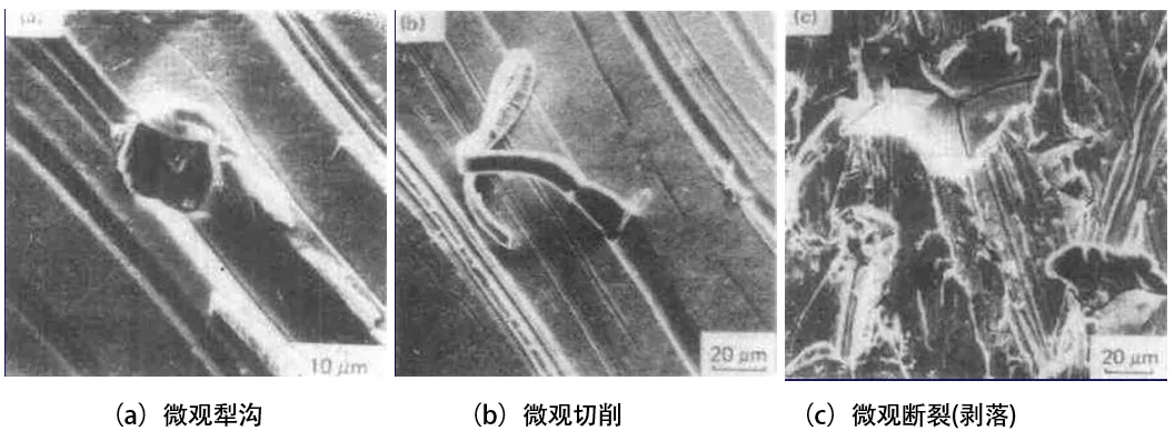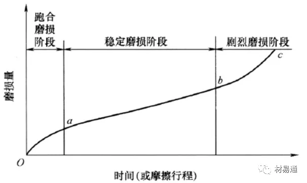 金属磨损是机械工程和材料科学中的一个重要研究领域。金属磨损是指金属表面在摩擦或接触过程中,由于机械或化学作用导致材料逐渐丧失的现象。磨损是影响金属材料使用寿命和性能的关键因素之一。了解磨损的基础知识对于材料选择、设计和维护非常重要。本期内容主要是分享金属磨损的基础知识和影响因素,学习适当的控制措施提高金属部件的使用寿命和性能。 金属磨损概述 金属摩擦表面相互接触过程中,表面不断发生损耗或产生塑性变形,使金属表面状态和尺寸发生改变的现象称为磨损。磨损导致的材料损失可能以磨屑、碎片或颗粒的形式表现出来。在摩擦载荷作用下,金属表面性质(金相组织、物理化学性能、力学性能)和形状的(形貌和尺寸、粗糙度、表面层厚度)会发生变化。 通常磨损过程是一个渐进的过程,正常情况下磨损直接的结果也并非灾难性的。金属磨损研究在材料科学与工程、机械工程和表面工程等领域均有涉及,各个学科的交叉和合作在磨损研究中也显得尤为重要,有助于全面理解和解决磨损问题。但从材料学科特别是从材料的工程应用来看,人们更重视研究材料的磨损。 图1 磨损行为的学科交叉性 金属磨损并非单一的力学过程。引起磨损的原因既有力学作用,也有物理和化学作用,因此,摩擦副材料、润滑条件、加载方式和大小、相对运动特性(方式和速度)以及工作温度等诸多因素均影响磨损量的大小,所以,磨损是一个复杂的系统过程。 磨损是材料五类失效模式之一,造成的损失也 是巨大的。据统计,在失效的零部件中,80%以上 是由各种形式的磨损或腐蚀引起的。就一个国家而言,每年因摩擦磨损造成的经济损失一般占GDP的1%以上。 在机械的正常运转中,磨损过程大致可分为三个阶段,如图2所示。 图2 金属磨损特性曲线 (1)跑合(磨合)磨损阶段 特点:这一阶段中,磨损速度由快变慢,而后逐渐减小到一稳定值。这是由于新加工的零件表面呈尖峰状态,使运转初期部件的实际接触面积较小,单位接触面积上的压力较大,因而磨损速度较快,如图1中磨损曲线的Oa段。跑合磨损到一定程度后,尖峰逐渐被磨平,磨损速度即逐渐减慢。 (2)稳定磨损阶段 特点:在这一阶段中磨损缓慢、磨损率稳定,零件以平稳而缓慢的磨损速度进入零件正常工作阶段,如图2中的ab段。这个阶段的长短即代表零件使用寿命的长短,磨损曲线的斜率即为磨损率,斜率越小磨损率就越低,零件的使用寿命就越长。经此磨损阶段后零件进入剧烈磨损阶段。 机制: 磨粒磨损:硬质颗粒或突起在表面滑动或滚动,产生划痕和切削作用。 腐蚀磨损:环境中的化学或电化学反应导致金属表面生成腐蚀产物,这些产物在机械作用下被移除。 疲劳磨损:由于循环应力作用,表面或亚表面材料产生疲劳裂纹,导致材料剥落。 (3)剧烈磨损阶段 特点:此阶段的特征是磨损速度及磨损率都急剧增大。当工作表面的总磨损量超过机械正常运转要求的某一允许值后,零件的磨损加剧,精度下降,润滑状态恶化,温度升高,从而产生振动、冲击和噪声,导致零件迅速失效,如图2中的bc段。 机制: 疲劳裂纹扩展:由于累积的疲劳损伤,裂纹继续扩展并最终导致材料剥落。 磨损产物的堆积:磨损产生的颗粒堆积在接触表面,增加磨粒磨损和粘着磨损的程度。 表面温度升高:摩擦热积累导致表面温度升高,材料软化和氧化加剧,加速磨损。 上述磨损过程中的三个阶段,是一般机械设备运转过程中都存在的。必须说明的是,在跑合阶段结束后应清洗零件,更换润滑油,这样才能正常地进入稳定磨损阶段。 耐磨性是材料抵抗外部磨损的性能,这是一个系统性质。迄今为止,还没有一个统一的、意义明确的耐磨性指标,表征金属的耐磨性需要综合使用各种磨损测试方法和分析技术,包括磨损试验、磨损量测量和表面分析等。 (1)磨损测试方法 可通过磨损试验机、磨粒磨损试验、腐蚀磨损试验等评估材料的耐磨性能。 (2)磨损量 在规定条件下,经过规定时间的磨损后,样品表面的损耗程度称为磨损量(W)。磨损量可通过测量长度、体积或质量的变化而得到,并相应称它们为线磨损量、体积磨损量和质量磨损量。 若测量单位摩擦距离、单位压力下的磨损量等,则称为比磨损量。磨损量越小,耐磨性越高。 (3)耐磨性 磨损量的倒数称为耐磨性,即ε=1/W。ε值越大,材料的磨损抗力越大。 (4)相对耐磨性 指在同样条件下,标准试样(Pb-Sn合金)的磨损量与被测试样磨损量的比值称为相对耐磨性。相对耐磨性的倒数称为磨损系数。 (5)磨损表面分析 可选择光学显微镜、扫描电子显微镜、能谱分析、X射线衍射等仪器设备了解磨损过程中材料的变化和机理。 ASTM G99:销-盘磨损试验标准。 ASTM G65:干砂橡胶轮磨损试验标准。 ASTM D4172:四球磨损试验标准。 ISO 20808:陶瓷材料的球-盘磨损试验标准。 金属的磨损类型 通常,按照磨损机理和磨损系统中材料与磨料、材料与材料之间的作用方式划分,磨损的主要类型可分为磨料磨损、粘着磨损、腐蚀磨损和疲劳磨损(接触疲劳)四种基本类型。但磨损过程十分复杂,有许多实际表现出来的磨损现象不能简单地归为某一种基本磨损类型,而往往是基本类型的复合或派生,如气蚀磨损、冲蚀磨损和微动磨损等。 一、粘着磨损 粘着磨损是指当两个金属表面在相对运动时,由于局部接触区域的粘着作用,导致