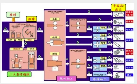 传统之镍基合金的生产流程为镍原料→ 镍合金铸锭(熔炼)→二次精炼→加工→成品→下游应用,见图9: