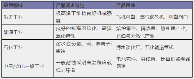 (3)工作环境超恶劣:镍基合金被广泛用于各种严苛之使用条件,如航天飞行引擎燃气室的高温高压部分、核能、石油、海洋工业之结构件,耐蚀管线等。