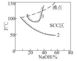 图 304不锈钢产生碱脆的浓度与温度的关系