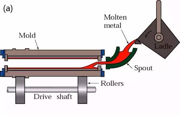 液态金属浇注到与零件形状、尺寸相适应的铸型型腔中,待其冷却凝固,以获得毛坯或零件的生产方法,通常称为金属液态成形或铸造。 铸造分类 : (1)砂型铸造(sand casting) 砂型铸造:在砂型中生产铸件的铸造方法。钢、铁和大多数有色合金铸件都可用砂型铸造方法获得。 工艺流程: 砂型铸造工艺流程 1、适合于制成形状复杂,特别是具有复杂内腔的毛坯; 2、适应性广,成本低; 3、对于某些塑性很差的材料,如铸铁等,砂型铸造是制造其零件或,毛坯的唯一的成形工艺。 应用:汽车的发动机气缸体、气缸盖、曲轴等铸件 (2)熔模铸造(investmentcasting) 熔模铸造:通常是指在易熔材料制成模样,在模样表面包覆若干层耐火材料制成型壳,再将模样熔化排出型壳,从而获得无分型面的铸型,经高温焙烧后即可填砂浇注的铸造方案。常称为“失蜡铸造”。 熔模铸造工艺流程 1、尺寸精度和几何精度高; 2、表面粗糙度高; 3、能够铸造外型复杂的铸件,且铸造的合金不受限制。 应用:适用于生产形状复杂、精度要求高、或很难进行其它加工的小型零件,如涡轮发动机的叶片等。 (3)压力铸造(die casting) 压铸:是利用高压将金属液高速压入一精密金属模具型腔内,金属液在压力作用下冷却凝固而形成铸件。 1、压铸时金属液体承受压力高,流速快 2、产品质量好,尺寸稳定,互换性好; 3、生产效率高,压铸模使用次数多; 4、适合大批大量生产,经济效益好。 缺点: 1、铸件容易产生细小的气孔和缩松。 2、压铸件塑性低,不宜在冲击载荷及有震动的情况下工作; 3、高熔点合金压铸时,铸型寿命低,影响压铸生产的扩大。 应用:压铸件最先应用在汽车工业和仪表工业,后来逐步扩大到各个行业,如农业机械、机床工业、电子工业、国防工业、计算机、医疗器械、钟表、照相机和日用五金等多个行业。 (4)低压铸造(low pressure casting) 低压铸造:是指使液体金属在较低压力(0.02~0.06MPa)作用下充填铸型,并在压力下结晶以形成铸件的方法.。 1、浇注时的压力和速度可以调节,故可适用于各种不同铸型(如金属型、砂型等),铸造各种合金及各种大小的铸件; 2、采用底注式充型,金属液充型平稳,无飞溅现象,可避免卷入气体及对型壁和型芯的冲刷,提高了铸件的合格率; 3、铸件在压力下结晶,铸件组织致密、轮廓清晰、表面光洁,力学性能较高,对于大薄壁件的铸造尤为有利; 4、省去补缩冒口,金属利用率提高到90~98%; 5、劳动强度低,劳动条件好,设备简易,易实现机械化和自动化。 应用:以传统产品为主(气缸头、轮毂、气缸架等)。 (5)离心铸造(centrifugal casting) 离心铸造:是将金属液浇入旋转的铸型中,在离心力作用下填充铸型而凝固成形的一种铸造方法。 1、几乎不存在浇注系统和冒口系统的金属消耗,提高工艺出品率; 2、生产中空铸件时可不用型芯,故在生产长管形铸件时可大幅度地改善金属充型能力; 1、用于生产异形铸件时有一定的局限性; 离心铸造最早用于生产铸管,国内外在冶金、矿山、交通、排灌机械、航空、国防、汽车等行业中均采用离心铸造工艺,来生产钢、铁及非铁碳合金铸件。其中尤以离心铸铁管、内燃机缸套和轴套等铸件的生产最为普遍。 (6)金属型铸造(gravity die casting) 金属型铸造:指液态金属在重力作用下充填金属铸型并在型中冷却凝固而获得铸件的一种成型方法。 工艺流程: 1、金属型的热导率和热容量大,冷却速度快,铸件组织致密,力学性能比砂型铸件高15%左右。 2、能获得较高尺寸精度和较低表面粗糙度值的铸件,并且质量稳定性好。 3、因不用和很少用砂芯,改善环境、减少粉尘和有害气体、降低劳动强度。 缺点: 1、金属型本身无透气性,必须采用一定的措施导出型腔中的空气和砂芯所产生的气体; 2、金属型无退让性,铸件凝固时容易产生裂纹; 3、金属型制造周期较长,成本较高。因此只有在大量成批生产时,才能显示出好的经济效果。 应用:金属型铸造既适用于大批量生产形状复杂的铝合金、镁合金等非铁合金铸件,也适合于生产钢铁金属的铸件、铸锭等。 (7)真空压铸(vacuumdie casting) 真空铸造:通过在压铸过程中抽除压铸模具型腔内的气体而消除或显著减少压铸件内的气孔和溶解气体,从而提高压铸件力学性能和表面质量的先进压铸工艺。 1、消除或减少压铸件内部的气孔,提高压铸件的机械性能和表面质量,改善镀覆性能; 2、减少型腔的反压力,可使用较低的比压及铸造性能较差的合金,有可能用小机器压铸较大的铸件; 3、改善了充填条件,可压铸较薄的铸件; 缺点: 1、模具密封结构复杂,制造及安装较困难,因而成本较高; 2、 真空压铸法如控制不当,效果就不是很显著。 (8)挤压铸造(squeezing die casting) 挤压铸造:是使液态或半固态金属在高压下凝固、流动成形,直接获得制件或毛坯的方法。它具有液态金属利用率高、工序简化和质量稳定等优点,是一种节能型的、具有潜在应用前景的金属成形技术。 工艺流程: 直接挤压铸造:喷涂料、浇合金、合模、加压、保压、泄压,分模、毛坯脱模、复位; 技术特点: 1、可消除内部的气孔、缩孔和缩松等缺陷; 2、表面粗糙度低,尺寸精度高; 3、可防止铸造裂纹的产生; 4、便于实现机械化、自动化。 (9)消失模铸造(Lost foam casting ) 消失模铸造(又称实型铸造):是将与铸件尺寸形状相似的石蜡或泡沫模型粘结组合成模型簇,刷涂耐火涂料并烘