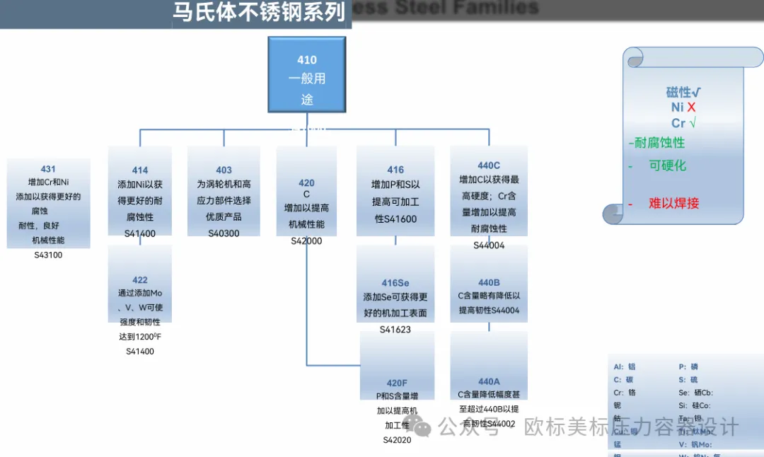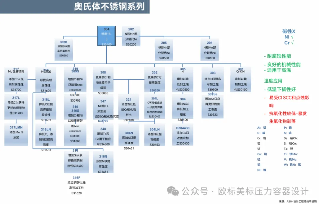 之前也分享过一些类似的,但是没有这么全。这次的大部分还都注明了图谱的来自哪本标准或资料,也注明了增加各种元素的作用;如增加Cr,Mo提高了耐腐蚀性;添加Si提高了抗氧化性;添加N提高了强度。以及各系列材料适用于哪方面,不适用于哪方面。