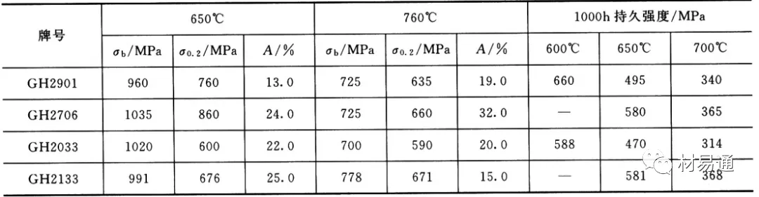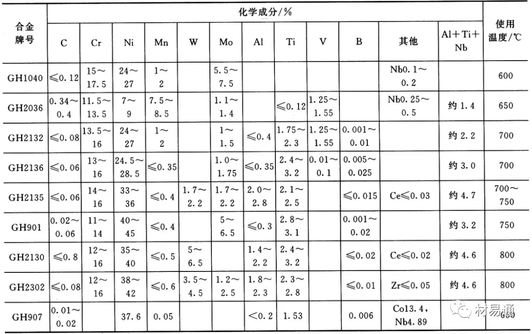 常见铁基变形高温合 金的牌号、化学成分及使用温度