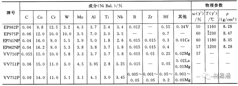英国首先在80Ni-20Cr合金中加入少量铝和钛,形成γ'相(gamma prime)以进行强化,研制成第一种具有较高的高温强度的镍基合金。同一时期,美国为了适应活塞式航空发动机用涡轮增压器发展的需要,开始用Vitallium钴基合金制作叶片。