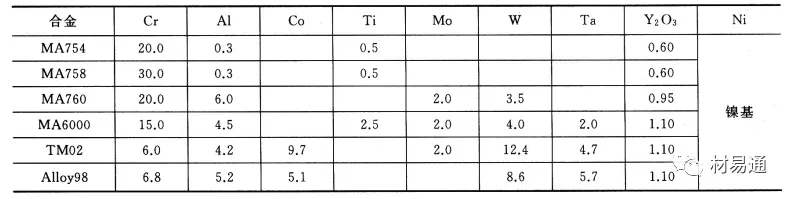 目前国内外已生产和研制的 ODS高温合金主要有三类: