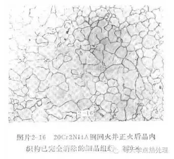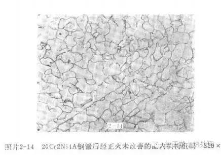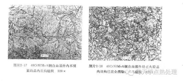 组织遗传✦ 非平衡组织(如马氏体、贝氏体等)的钢,如以快速或慢速加热到Ac1~Ac3之间的低温区,则奥氏体即以有取向的针形核,并定向长大,合并而恢复到原奥氏体晶粒大小,这种现象称为组织遗传。组织遗传在碳素钢、合金钢、高速钢中均有发现。进一步研究还证明:平衡组织在非常快的加热速度(>105℃/S)或在非常慢的加热速度(≈1℃/min)下,也会发生组织遗传。 相变遗传✦ 除组织遗传现象外,当加热和冷却时,转变后的奥氏体转变为马氏体时,会将其在塑性变形中形成的大量位错等晶体缺陷遗传给马氏体,使马氏体强韧性大大提高,这种现象称之为相变遗传。 组织遗传和相变遗传都是金属加热和冷却过程中遗传性的表现形式的一种现象,应加以区分。相变遗传有利于发挥材料潜力,这一规律可以强化金属材料(如钢的形变热处理),提高工件服役寿命。组织遗传一般使钢材热处理后性能降低,但在特殊情况下,也可加以利用(如硅钢片中的织构就是利用组织遗传取得的,从而提高了磁导率)。 晶粒遗传✦ 有些锻件(特别是马氏体钢模锻件),由于锻造加热温度与停锻温度比较高,锻后形成粗大的奥氏体晶粒冷却到室温后,在原来一颗颗奥氏体晶粒内由于相变形成许多颗小晶粒,发现这些小晶粒的空间取向往往与原来奥氏体空间取向基本上一致,也就是说,形式上是原来一颗大晶粒分割成许多小晶粒,而实质上还是原来一颗大晶粒。当重新正火加热时,这些小晶粒将会还原成原来的奥氏体晶粒,且取向基本上没有多大变化。随着正火加热温度高低不同,只是还原程度不同而已。正火冷却时,一颗奥氏体晶粒又再次重新分割成若干个小晶粒,这样正火前粗大的晶粒在经过正火后形式上是细化了(分割成许多细小的晶粒),但实质上由于很多小晶粒的位相与原来的奥氏体晶粒一致,所以仍保留了大晶粒的特征。 当制成金相试样时,在显微镜下观察往往不易发现这种高温下的原始奥氏体晶界,这是由于被锻件冷却(一般淬火状态)时相变后的组织所掩盖罢了,若采用特殊腐蚀剂显示晶粒的方法或者打断口方法就很容易看出这种原始晶粒。 不同材料这种晶粒遗传程度和顽固性是不同的,很显然,这种粗大晶粒的遗传给最终热处理及使用性能(特别是承受过载的冲击性能)带来极为不利的影响。 解决晶粒遗传的方法: 1)采用二次或多次正火的方法。一般结构钢经一次正火即可完成细化,原始晶界消失,而有些材料如18CrNiWA,20Cr2NiA等,经一次正火后,仍消失不了原始晶界,即出现晶粒遗传现象,需经二次或多次正火,有的甚至需要采用高温正火或反复高温正火工艺。因为每经一次正火加热与冷却,即很多颗小晶粒还原成原来的奥氏体晶粒(程度与大小不同),或一颗奥氏体晶粒分解成很多小晶粒。但他们之间的位相总不能完全一致,所以经二次或多次正火对那些遗传性比较顽强的材料可以破坏其遗传从而得到真正的细小晶粒。 2)通过退火的方法。对于3Cr3Mo3VNb等马氏体型不锈钢进行退火或等温退火通过相变重结晶来细化晶粒,能有效的消除粗大晶粒的遗传。 3)采用锻后回火的方法。对于18Cr2Ni4WA,20Cr2Ni4A等钢锻件,在冷却到室温后再进行一次高温回火如图2-15,然后正火如图2-16。 锻件在高温回火时,由于高度弥散质点的析出及基体α相的再结晶,促使在以后正火加热时容易以这些析出的质点为核心形成奥氏体晶粒,从而破坏空间取向,所以相变后晶粒得到了真正充分的细化。 4)采用低温大变形程度的方法,模锻时坯料尺寸确定之后,变形程度也就大体确定了,而自由锻时可以通过反复镦拔等方法来增大变形程度,且其终锻温度可以低些,因而锻后晶粒细小,如图2-17。而且由于残余大量变形和内应力,在正火加热温度稍高于相变点时将促使α→γ相按无序转变方式形成奥氏体,破坏了原来的空间取向,所以相变后的晶粒得到真正的充分细化,见图2-18。