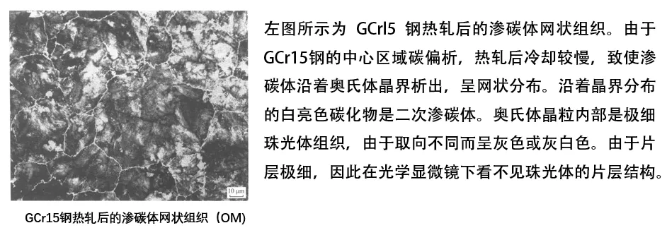 工具钢球化退火可为加工和淬火作好组织准备。轴承钢球化退火应当得到均匀细小的粒状珠光体组织,为淬火作组织准备。但是当退火工艺不当,则会出现不完全球化,残留并存在部分片状珠光体。