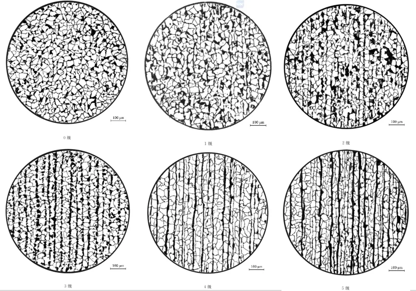 A系列:含碳量小于0.1%钢的带状组织评级 B系列:含碳量0.1%~0.19%钢的带状组织评级 C系列:含碳量0.2%~0.29%钢的带状组织评级 D系列:含碳量0.3%~0.39%钢的带状组织评级 E系列:含碳量0.4%~0.6%钢的带状组织评级