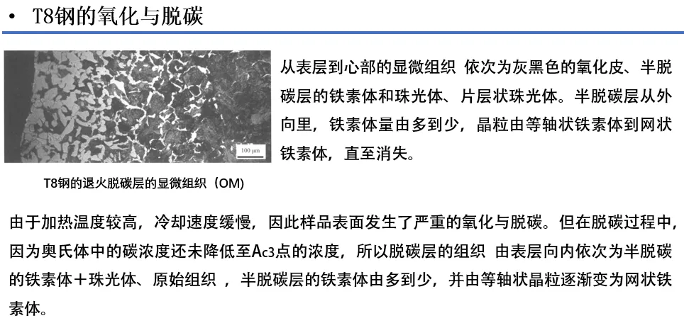 2)钢在A3或A1以上加热时,弱脱碳产生等轴状晶粒。随着加热温度的升高,加热介质的氧化性增强,钢的氧化脱碳增加。