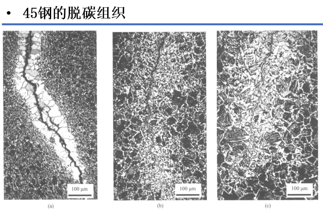 脱碳会明显降低钢的淬火硬度、耐磨性和抗疲劳性能,高速钢脱碳会降低热硬性。