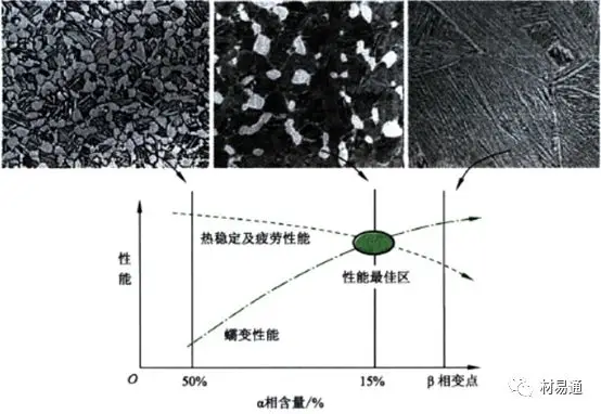 通过大量测试和实践,钛合金的组织与力学性能之间的关系已达成共识。四种典型组织形态与力学性能的关系表明,每种组织都有其优势和劣势。然而,现代航空材料的复杂服役条件要求材料具备更好的综合力学性能,而这一要求与现有材料性能的局限性之间存在矛盾。为了解决这一问题,工艺创新不断推进,如近β、准β和多重热处理技术,通过优化组织形态以获得更好的综合力学性能,尽管这些方法可能会牺牲一些工艺的便利性。