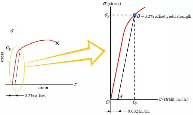 对于不同的金属构件,其条件屈服强度对应的残余变形量不同。对于一些苛刻的金属构件,其残余变形量规定应较小,而普通金属构件条件屈服时对应的残余变形量则较大。常用的残余变形量为0.01%,0.05%, 0.1%,0.2%,0.5%和1.0%等。
