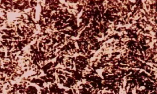 回火屈氏体:淬火马氏体经中温回火的产物,其特征是:马氏体针状形态将逐步消失,但仍隐约可见(含铬合金钢,其合金铁素体的再结晶温度较高,故仍保持着针状形态),析出的碳化物细小,在光镜下难以分辨清楚,只有电镜下才可见到碳化物颗粒,极易受侵蚀而使组织变黑。如果回火温度偏上限或保留时间稍长,则使针叶呈白色;此时碳化物偏聚于针叶边缘,这时钢的硬度稍低,且强度下降。