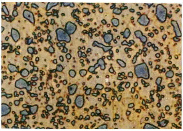 特性:铸铁合金溶液含碳量在2.11%以上时,缓慢冷到1147℃便凝固出共晶莱氏体;1148℃~727℃之间的莱氏体称为高温莱氏体(Ld);727℃以下的莱氏体称为变态莱氏体或称低温莱氏体(Ld’);