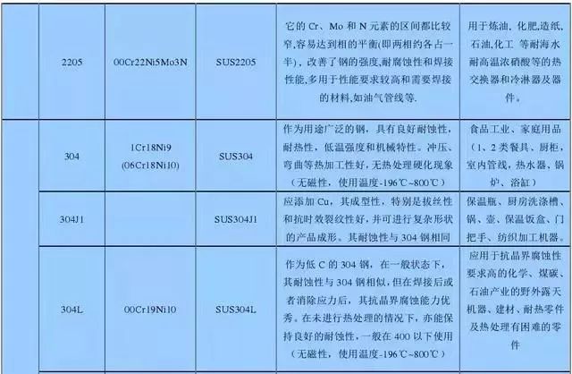 2、公差产生的原因是根据市场和客户需求,一般分为大公差和小公差:例如 什么样的不锈钢不易生锈? 影响不锈钢锈蚀的主要因素有三点: 1、合金元素的的含量。 一般地说铬的含量在10.5%钢就不易生锈了。铬镍的含量越高防腐性就越好,如304材质镍要的含量在8-10%,铬的含量达到18-20%,这样的不锈 钢在一般情况下是不会生锈的。 2、生产企业的冶炼工艺也会影响不锈钢的耐腐蚀性。 冶炼技术好、设备先进、工艺先进的大的不锈钢厂无论是在合金元素的控制,杂质的去除、钢坯冷却温度的控制都能得到保证,因此产品质量稳定可靠,内在质量好,不易生锈。反之一些小的钢厂设备落后,工艺落后,冶炼过程中,杂质不能去除,生产的产品难免会生锈。 3、 外部环境,气候干燥通风好的环境不易生锈。 而空气湿度大,连续阴雨天气、或空气中含酸碱度大的环境地区就易生锈。304材质不锈钢,如果周边环境太差也是会生锈的。 不锈钢出现锈斑该怎样处理? 1、化学方法 用酸洗膏或喷雾辅助其锈蚀部位重新钝化形成氧化铬薄膜使其重新恢复耐腐蚀能力,酸洗之后,为了去除所有的污染物和酸残留物,用清水进行适当的冲洗非常重要。一切处理后用抛光设备重新抛光,用抛光腊封闭即可。对局部有轻微锈斑的也可用1:1的汽油、机油混合液用干净抹布擦去锈斑即可。 2、机械方法 喷砂清理,用玻璃或陶瓷微粒喷丸清理,湮没,刷洗和抛光。用机械方法有可能擦去以前被清除的材料、抛光材料或湮没材料造成的污染。所有各种污染尤其是外来铁颗粒都可能成为腐蚀的来源,特别是在潮湿环境中。因此,机械清理表面最好应当在干燥条件下进行正规清理。使用机械法只能清理其表面,不能改变材料本身的抗腐蚀能力。因此建议在机械清理后用抛光设备重新抛光,用抛光腊封闭。 常用不锈钢牌号及性能 1、304不锈钢。是应用量较大、使用范围最广的奥氏体不锈钢之一,适用于制造深冲成型部件和输酸管道、容器、结构件、各类仪表本体等,也可以制造无磁、低温设备和部件。 2、304L不锈钢。为解决因Cr23C6析出致使304不锈钢在一些条件下存在严重的晶间腐蚀倾向而发展的超低碳奥氏体不锈钢,其敏化态耐晶间腐蚀能力显著优于304不锈钢。除强度稍低外,其它性能同321不锈钢,主要用于需焊接后又不能进行固溶处理的耐蚀设备和部件,可用于制造各类仪表本体等。 3、304H不锈钢。304不锈钢的内部分支,碳质量分数在0.04%—0.10%,高温性能优于304不锈钢。 4、316不锈钢。在10Cr18Ni12钢基础上加人钼,使钢具有良好的耐还原性介质和耐点腐蚀能力。在海水和其他各种介质中,耐腐蚀性优于304不锈钢,主要用于耐点蚀材料。 5、316L不锈钢。超低碳钢,具有良好的耐敏化态晶间腐蚀的性能,适用于制造厚截面尺寸的焊接部件和设备,如石油化工设备中的耐蚀材料。 6、 316H不锈钢。316不锈钢的内部分支,碳质量分数在0.04%—0.10%,高温性能优于316不锈钢。 7、317不锈钢。耐点蚀和抗蠕变能力优于316L不锈钢,用于制造石化及耐有机酸腐蚀的设备。 8、321不锈钢。钛稳定化的奥氏体不锈钢,添加钛提高耐晶间腐蚀性能,并具有良好的高温力学性能,可用超低碳奥氏体不锈钢代替。除高温或抗氢腐蚀等专用场合外,一般情况不推荐使用。 9、347不锈钢。铌稳定化的奥氏体不锈钢,添加铌提高耐晶间腐蚀性能,在酸、碱、盐等腐蚀介质中的耐蚀性同321不锈钢,焊接性能良好,即可作耐蚀材料又可作耐热钢使用,主要用于火电、石化领域,如制作容器、管道、热交换器、轴类、工业炉中的炉管以及炉管温度计等。 10、904L不锈钢。超级完全奥氏体不锈钢,是芬兰奥托昆普(OUTOKUMPU)公司发明的一种超级奥氏体不锈钢,其镍质量分数为24%一26%,碳质量分数小于0.02%,耐腐蚀性极好,在非氧化性酸如硫酸、醋酸、甲酸、磷酸中具有很好的耐蚀性,同时具有良好的抗缝隙腐蚀及抗应力腐蚀性能。适用于70℃以下各种浓度硫酸,在常压下耐任何浓度、任何温度的醋酸及甲酸与醋酸的混酸中耐腐蚀性也很好。原有标准ASMESB-625将其归人镍基合金,新标准将其归为不锈钢。中国只有近似牌号015Cr19Ni26Mo5Cu2钢,少数欧洲仪表厂商的关键材质采用904L不锈钢,例如E+ H的质量流量计的测量管就是采用904L不锈钢,劳力士手表的表壳也采用904L不锈钢。 11、440C不锈钢。马氏体不锈钢、在可淬硬性不锈钢、不锈钢中硬度最高,硬度为HRC57。主要用于制作喷嘴,轴承,阀门的阀芯、阀座、套筒、阀杆等。 12、17-4PH不锈钢。马氏体沉淀硬化不锈钢,硬度为HRC44,具有高强度、硬度和抗腐蚀性,不能用于高于300℃的温度。对大气及稀释酸或盐都具有良好的抗腐蚀能力,它的抗腐蚀能力与304不锈钢和430不锈钢一样,用于制造海上平台,涡轮机叶片,阀门的阀芯、阀座、套筒、阀杆等。 13、300 系列—铬-镍奥氏体不锈钢 301—延展性好,用于成型产品。也可通过机械加工使其迅速硬化,焊接性好。抗磨性和疲劳强度优于304不锈钢。301不锈钢在形变时呈现出明显的加工硬化现象,被用于要求较高强度的各种场合 302—实质上就是含碳量更高的304不锈钢的变种,通过冷轧可使其获得较高的强度。 302B—是一种含硅量较高的不锈钢,它具有较高的抗高温氧化性能。 303和303Se—是分别含有硫和硒的易切削不锈钢,用于主要要求易切削和表而光浩度高的场合。303Se不锈钢也用于制作需要