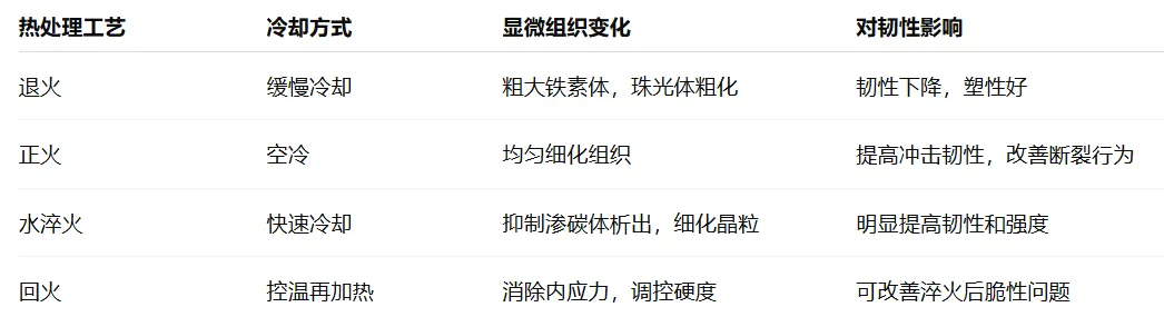 在正火处理中,晶粒尺寸可控制在10 μm以下,有助于提升材料的裂纹扩展抗力,并降低夏比冲击试样的转变温度(DBTT)。