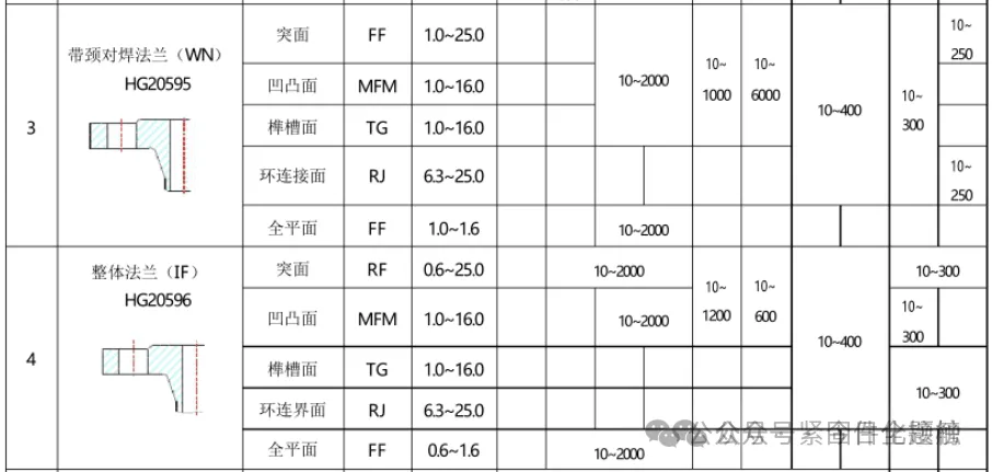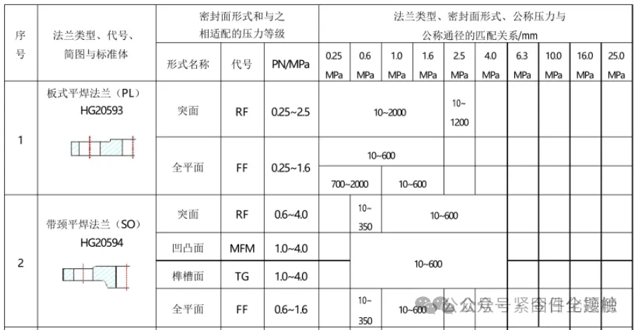 欧洲体系欧洲体系钢制法兰类型、密封面型式与公称压力PNg及工称通颈DN间的具体适配关系