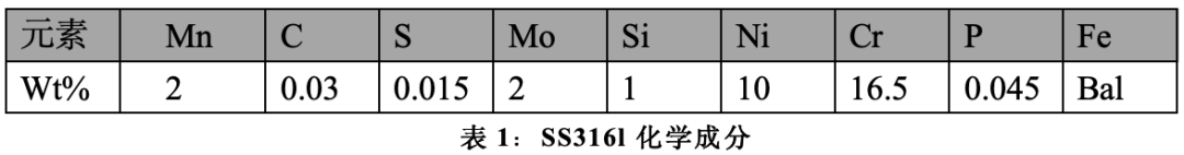 在本研究中,选择了金属元素Al、Co、Cr、Fe和Ni作为高熵合金(HEA)的组成元素。Ni和Co能够提高塑性,Al、Fe和Co提供机械性能的改善,而Al、Co和Cr增强了耐腐蚀和抗氧化性能。所选元素的纯度为99%,且按等原子比进行配置。HEA通过真空下的气体雾化工艺形成。而雾化工艺能够生成球形粉末颗粒正是该合成方法可以合成HEA的原因23,24。SS316L级钢材由于上述应用中会随着时间推移而发生严重腐蚀,因此需要控制其腐蚀效应。因此,选择SS316L作为基材,并进行了实验以优化和研究其特性。SS316L钢的化学成分如表1所示。