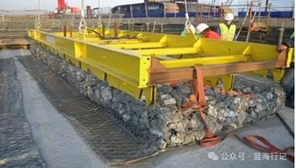 3. 结合船舶起重机与潜水员、起吊框架GPS或遥控潜水器(ROV),将垫体定位在海底,确保精准放置;
