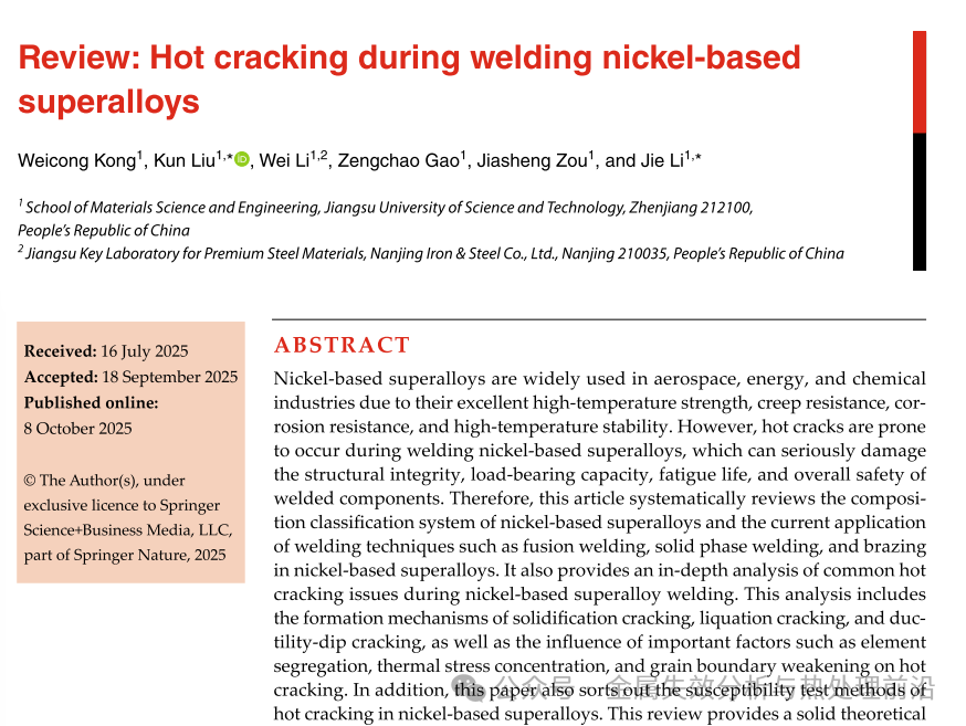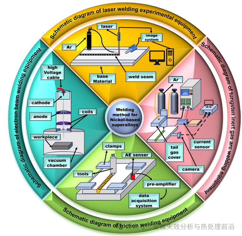概要介绍 原文全文有51页,我读过的篇幅排得上前列的综述,非常全面的镍基合金焊接热裂纹综述,如果大家感兴趣,强烈推荐看原文,获取原文方式在文末。 一、镍基高温合金分类与焊接技术 1.1 合金分类 图4 镍基高温合金固溶处理所用合金元素 图5 单晶镍基高温合金制造设备示意图。 1.2 常用焊接技术 图2 四种镍基高温合金的焊接设备示意图
