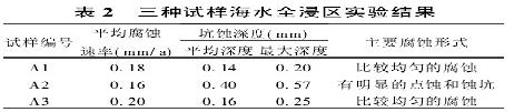全浸带由于上述氧浓差电池作用和海水流动造成金属上氧的不均匀分布形成的氧浓差电池及海洋 生物的作用,加上不同的金属接触所产生的电化 学腐蚀,所以除了金属的均匀腐蚀,还会产生局 部腐蚀或点蚀。