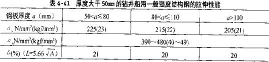 《海上移动式钻井船入级与建造规范》规定,船式、驳船式和坐底式钻井船用一般强度结构钢材,应选用按船规规定的一般强度船体结构钢,《规范》将一般强度结构钢分为A、B、D、E共4个等级。