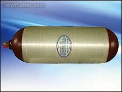 纤维缠绕成型工艺的优点是:能够按产品的受力状况设计缠绕规律,以充分发挥纤维的强度;比强度高。一般来讲,纤维缠绕压力容器与同体积、同压力的钢质容器相比,重量可减轻40%~60%;可靠性高。纤维缠绕制品易实现机械化和自动化生产,工艺条件确定后,缠出来的产品质量稳定、精确;生产效率高。采用机械化或自动化生产,只需少数操作工人,缠绕速度快(240m/min);成本低。在同一产品上,可合理配选若干种材料(包括树脂、纤维和内衬),使其再复合以达到最佳的技术经济效果。现在用纤维缠绕成型工艺生产的CNG/LPG高压气瓶、传动轴和板状弹簧等已广泛应用于大客车、轿车和卡车上。纤维缠绕成型工艺的缺点是:缠绕成型适应性小,不能缠任意结构形式的制品,特别是具有凹形表面的制品。这是因为缠绕时,纤维不能紧贴在芯模表面,而是处于架空状态;缠绕成型需要有缠绕机、芯模、固化加热炉、脱模机及熟练的技术工人,不仅投资大,而且技术要求高,因此只有大批量生产时才能获得较大的经济技术效益。图8所示为采用纤维缠绕成型工艺生产的CNG乘用车用高压气瓶。