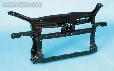 LFT-D成型工艺的优点主要有两个:一是成本低。由于是直接一步法生产,因此由LFT-D生产的大型结构部件比两步法生产的GMT或LFT-G压制部件的成本低20%~50%;二是制品的综合性能优异。LFT-D压制成型制品的抗冲击性能比GMT稍低一些,但由于比LFT-G成型后的纤维长很多,因此其抗冲击性能明显比LFT-G高得多。另外,大量的研究表明,LFT-D注塑的生产效率比采用标准LFT-G粒料的生产效率高,因为LFT-D低的塑化要求改善了纤维被剪断的可能性。对于成型周期超过1min的部件,用LFT-D注塑设备在30s内就能完成。LFT-D成型工艺的缺点主要是制品厂需要加大对LFT-D成型工艺以及材料、配方等的研究投入。图17所示为采用 LFT-D生产的2003 大众 Golf V前端框架。