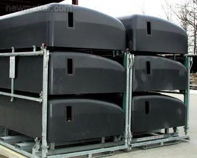 模压成型工艺的不足之处在于模具制造复杂,投资较大,加上受压机限制,使其更适合于生产中、大批量的汽车复合材料制品(热固性汽车复合材料制品在100000件/年以内,热塑性汽车复合材料制品在1000000件/年以内)。随着金属加工技术、压机制造水平及合成树脂工艺性能的不断改进和提高,压机吨位和台面尺寸不断增大,模压料的成型温度和压力也相对降低,使得模压成型制品的尺寸逐步向大型化发展,目前已能生产的大型汽车部件如模压重卡高顶、MPV车顶、皮卡车厢、重卡驾驶室侧围板等。图15所示即为模压成型工艺生产的2001福特Explorer Sport Trac SMC皮卡车厢。