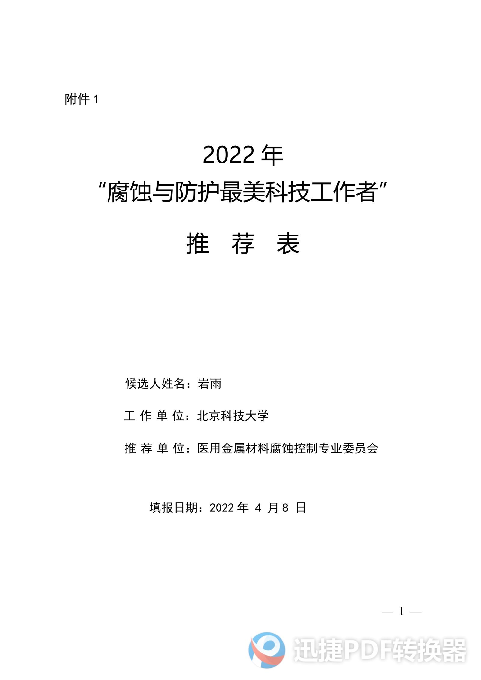 关于开展2022年“腐蚀与防护最美科技工作者”学习宣传