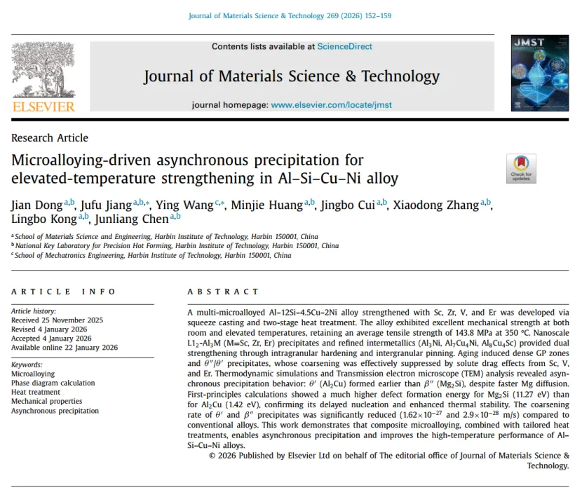 哈工大《JMST》:多元微合金化赋能铝硅铜镍合金高温性能大幅提升!