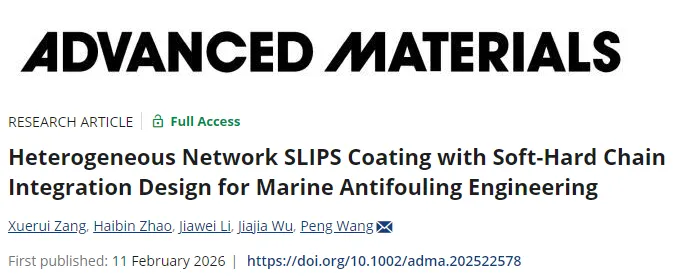中科院海洋所王鹏研究员AM:新型异质网络SLIPS海洋防污涂层!