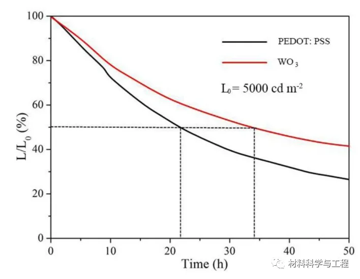 图4 .基于WO 3 NCs和PEDOT:PSS的器件寿命特性。