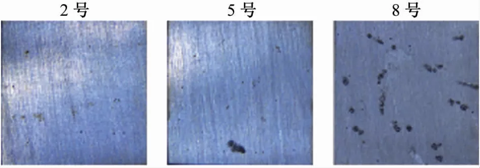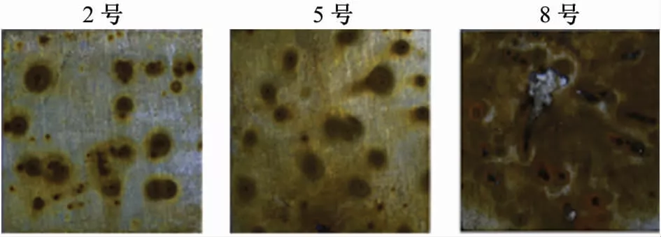 图6 不同状态2,5,8号试片的表面腐蚀形貌(100×)