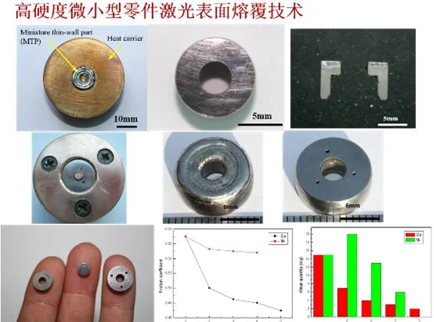 在激光表面熔覆理论与技术研究方向上,课题组面向国家重点研发计划的需求,针对高硬度微小型多微孔零件,提出、设计并优化的激光熔覆用紫铜辅助工艺装置技术,避免了该类高硬度、复杂形状的小尺寸关键件在激光熔覆过程中变形、烧蚀、高温回火等现象的产生。通过碳棒镶嵌技术有效解决了多微孔零件激光熔覆过程中熔覆层堵塞微孔的难题,最终使该零件获得高硬度、高耐磨性能及优良的耐油流冲蚀性能。通过梯度涂层设计与制备技术的研究,有效解决了高压油泵凸轮轴激光熔覆大面积、高厚度与硬度耐磨涂层技术难题。通过在Ni基合金涂层中添加纳米WC颗粒有效提高了复合涂层的耐磨与耐冲击性能,为改善零部件磨损与冲击失效问题提供了重要的理论与应用基础。