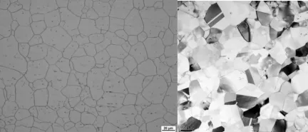 图2(a)304不锈钢初始热轧组织;(b)制备的纳米/亚微米晶组织