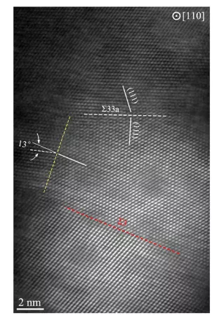 图10所示为在 473 K 退火 30 分钟纳米晶 Al-Mg 合金Σ边界的 HRTEM 图像。