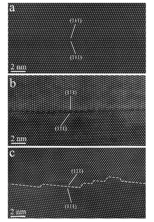 图3所示为高分辨率 HAADF-STEM 图像显示了典型的Σ边界,光束方向沿所制备的纳米晶粒Al-5Mg合金的<110>:(a)Σ3,(b)Σ9,和(c)Σ11边界。