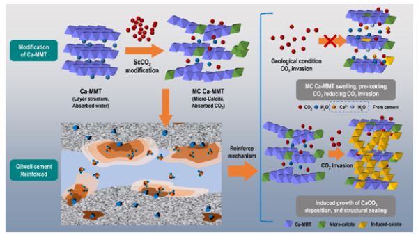 CO2捕集、利用与封存技术是现行最有效的CO2减排技术之一,是实现碳中和目标的重要技术支撑。近日,中国科学院武汉岩土力学研究所的科研团队利用超临界CO2对纳米黏土材料进行改性处理,发现改性纳米黏土阻碍了CO2向水泥石内部的侵入,并对溶解区域具有一定的修复作用,使得井筒水泥石耐久性得以提高。